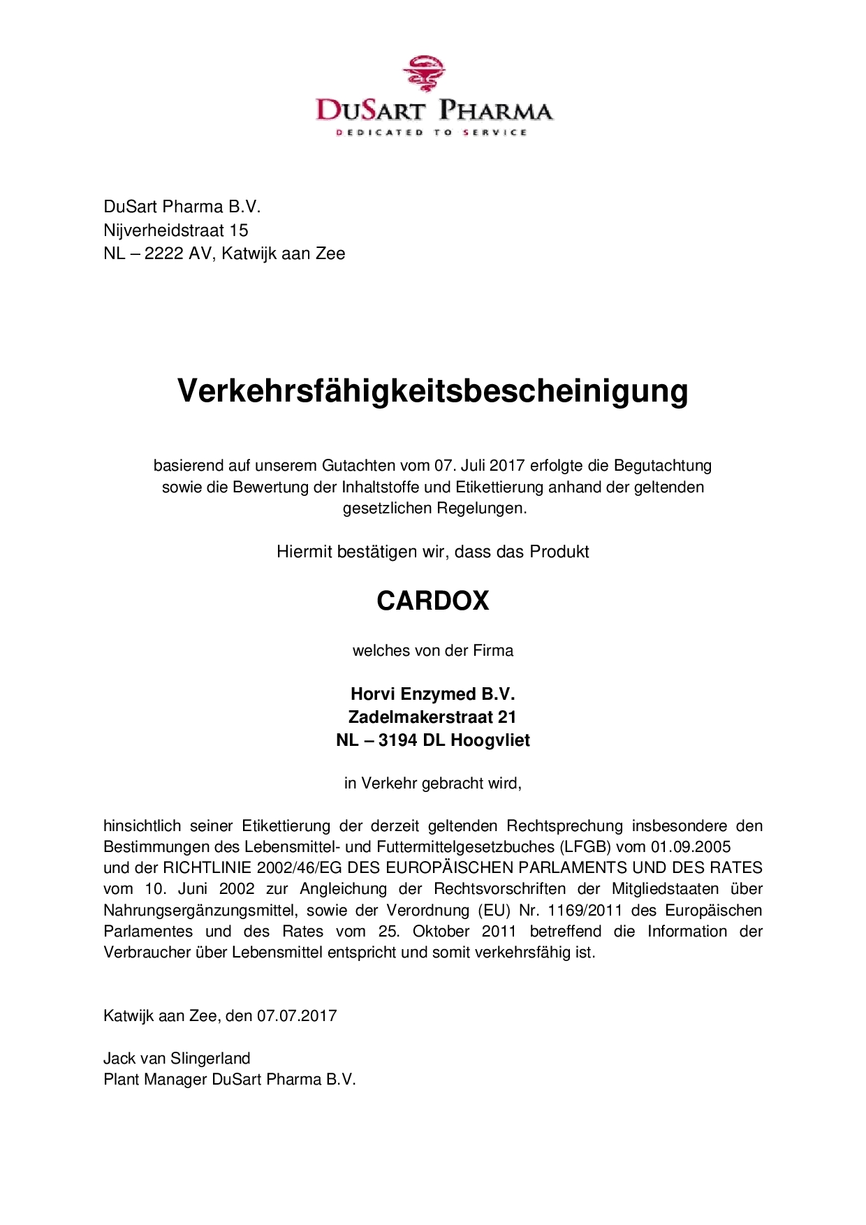 Verkehrsfähigkeitsbescheinigung